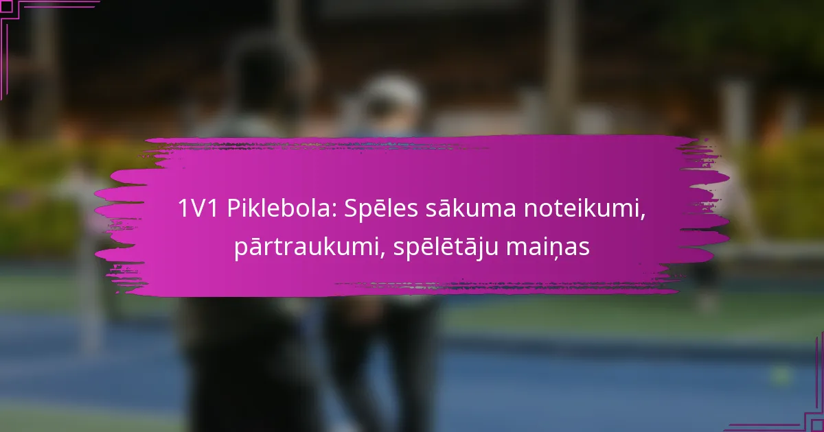 1V1 piklebola spēlē izpratne par spēles sākuma noteikumiem ir būtiska, lai nodrošinātu gludu un godīgu spēli, jo tie nosaka servēšanas secību un spēlētāju atbildību. Spēlētājiem ir atļautas arī pārtraukumi atpūtai vai stratēģijas izstrādei, lai gan to skaits ir ierobežots un tie var ietekmēt spēles iznākumu. Lai gan spēlētāju maiņas parasti nav atļautas oficiālajā spēlē, ir vadlīnijas gadījumiem, kad var būt elastība neformālās situācijās.