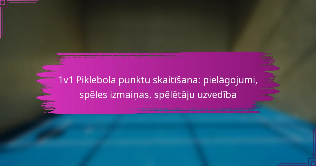 Punktus 1v1 piklbolā var pielāgot, lai uzlabotu spēles gaitu un pielāgotu dažādiem prasmju līmeņiem. Šīs pielāgošanas var ietvert alternatīvas punktu sistēmas, izmaiņas konkurences spēlē un apsvērumus par to, kā šīs izmaiņas ietekmē spēles dinamiku.