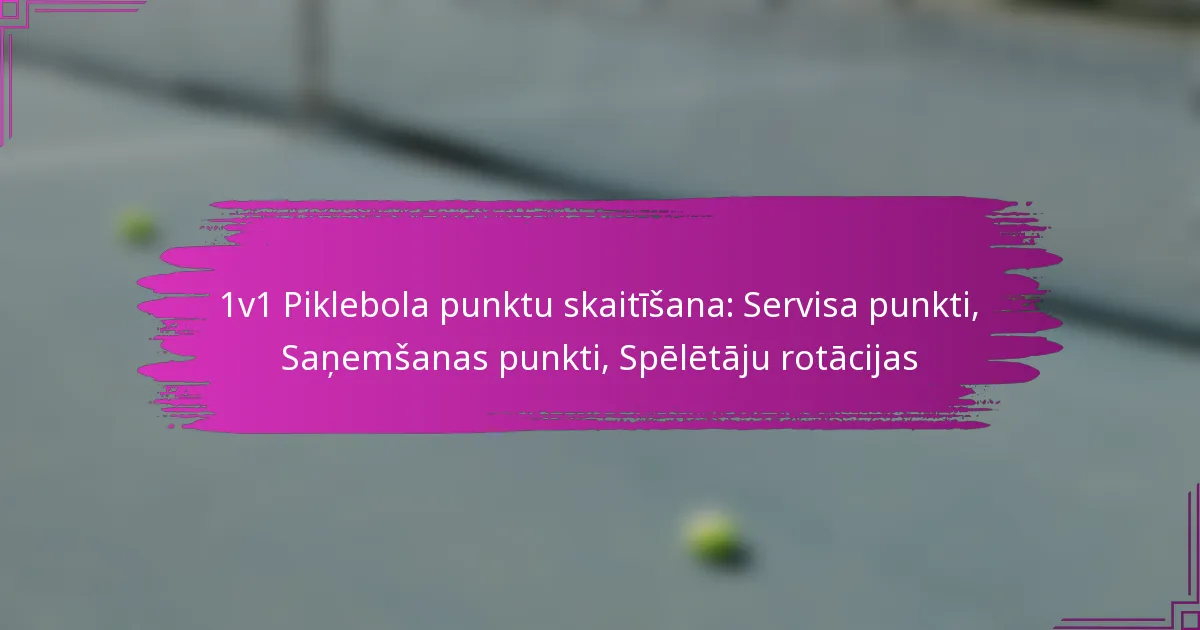 1v1 piklebola spēlē punktu skaitīšana balstās uz skaidru sistēmu, kurā spēlētāji iegūst punktus, pamatojoties uz savu sniegumu izspēlēs. Servētājam ir iespēja gūt punktus, kad viņš uzvar izspēlē, kamēr saņēmējs cenšas novērst viņa centienus. Izpratne par servēšanas punktu skaitīšanas mehāniku un to, kā punkti var tikt iegūti, saņemot, ir būtiska efektīvai spēlei.
