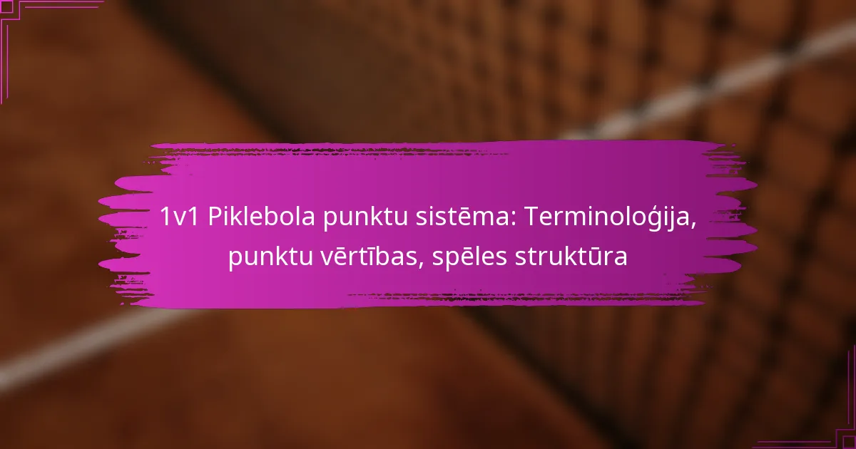 1v1 piklebolā terminoloģijas izpratne ir būtiska gan spēlētājiem, gan skatītājiem. Galvenie termini, piemēram, serve, kļūda un izspēle, nosaka spēles plūsmu, kamēr jēdzieni, piemēram, spēles punkts un mača punkts, nosaka iznākumu. Iepazīšanās ar šiem terminiem uzlabo spēles gaitu un komunikāciju spēļu laikā.