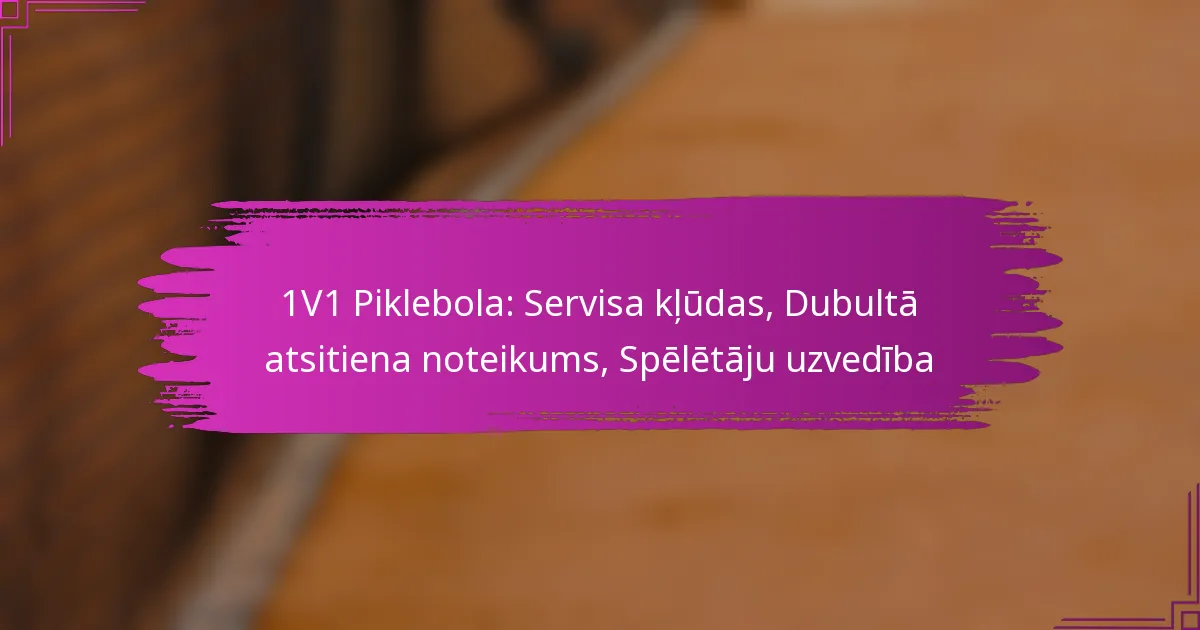 1V1 piklbolā ir būtiski saprast noteikumus, kas saistīti ar servēšanas kļūdām, dubultā atsitiena noteikumu un spēlētāju uzvedību, lai nodrošinātu godīgu un patīkamu spēli. Servēšanas kļūdas var novest pie servēšanas zaudējuma, savukārt dubultā atsitiena noteikums veicina stratēģisku spēli, pieprasot, lai bumba atsitās vienu reizi katrā pusē, pirms spēlētāji to var sitienā gaisā. Turklāt cieņas un sportiskuma uzturēšana starp spēlētājiem uzlabo kopējo pieredzi un veicina pozitīvu atmosfēru laukumā.